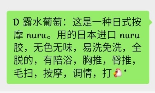 甜甜很健谈, nuru和按摩服务很好~ 还没尝试过的兄弟们能去尝试看看~